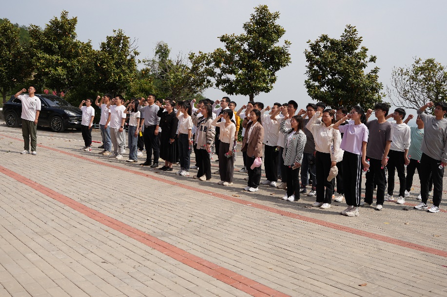 隨后,同志們?cè)谏巾數(shù)木扌忘h旗雕塑前,面對(duì)鮮艷莊重的黨旗高舉右拳莊嚴(yán)宣誓,重溫了入黨誓詞,重溫入黨初心。