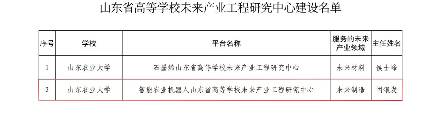 近日,山東省教育廳、山東省工業(yè)和信息化廳公布了山東省高等學(xué)校未來(lái)產(chǎn)業(yè)實(shí)驗(yàn)室和未來(lái)產(chǎn)業(yè)工程研究中心建設(shè)名單,我院牽頭申報(bào)的“智能農(nóng)業(yè)機(jī)器人山東省高等學(xué)校未來(lái)產(chǎn)業(yè)工程研究中心”成功獲批建設(shè)。