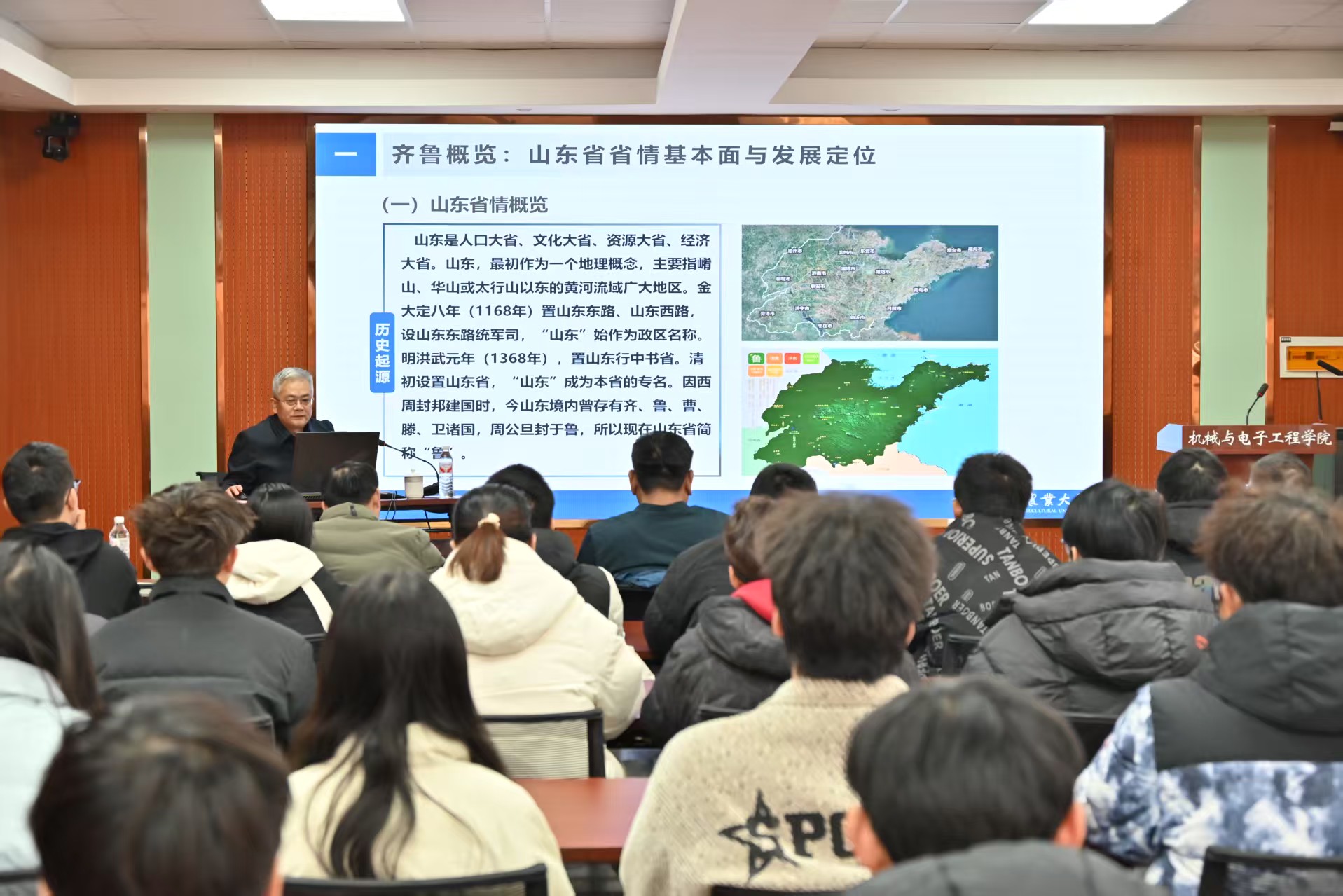 12月3日下午,學(xué)校黨委常委、紀(jì)委書記、監(jiān)察專員劉戈在麥瀾樓423室,為機(jī)電學(xué)院學(xué)子講授題為“守好齊魯糧倉 助力鄉(xiāng)村振興——新時代山東‘三農(nóng)’發(fā)展形勢”的思政課。