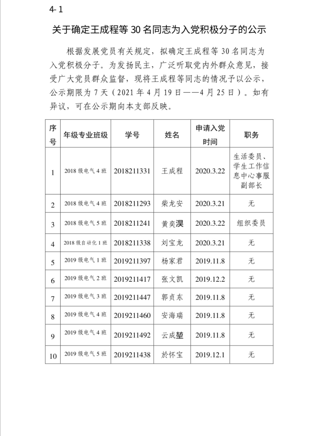 關(guān)于確定王成程等30名同志為入黨積極分子的公示