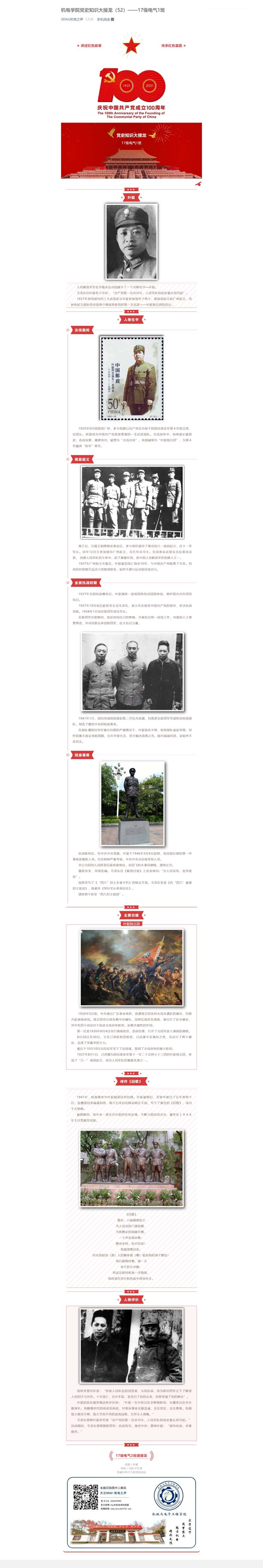 機(jī)電學(xué)院黨史知識大接龍(52)——17級電氣1班