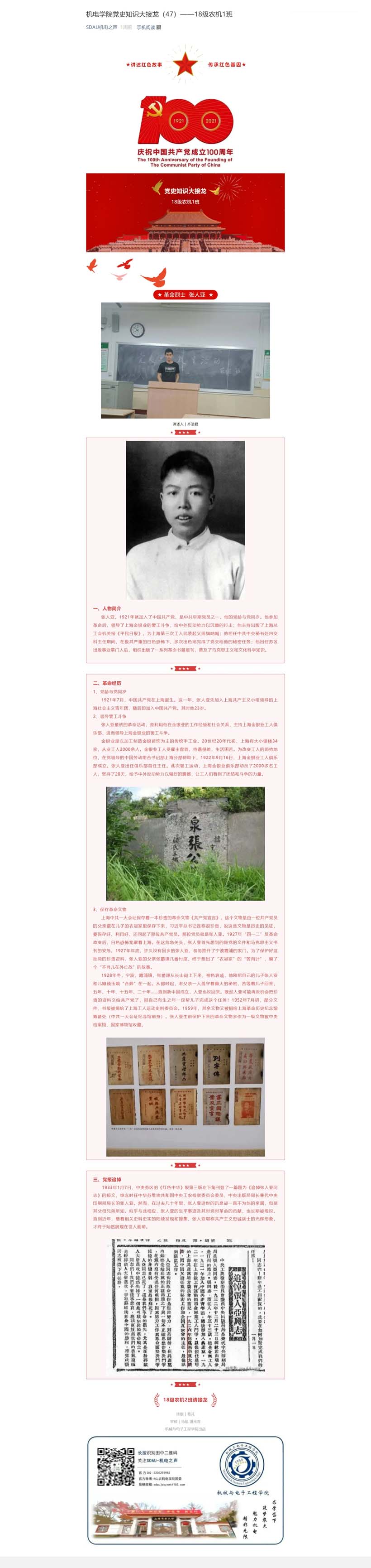 機(jī)電學(xué)院黨史知識(shí)大接龍(47)——18級(jí)農(nóng)機(jī)1班