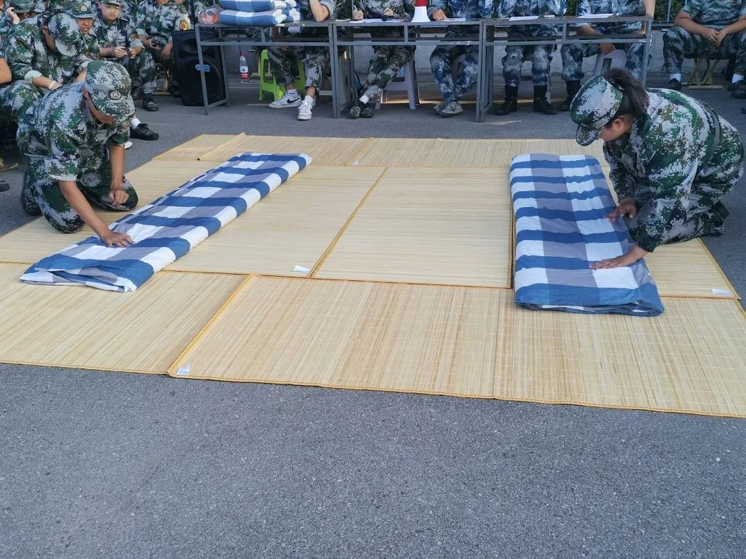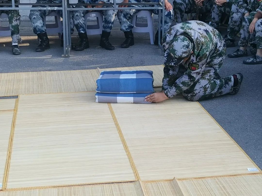 學(xué)生代表提前將被褥搬運(yùn)至訓(xùn)練場(chǎng),首先由各軍訓(xùn)教官親自動(dòng)手,現(xiàn)場(chǎng)示范,為同學(xué)們演示了疊好軍被的幾個(gè)步驟,邊示范邊講解要領(lǐng),“疊、壓、捋”一氣呵成,同時(shí)也向參訓(xùn)同學(xué)們提出了高標(biāo)準(zhǔn)、嚴(yán)要求。