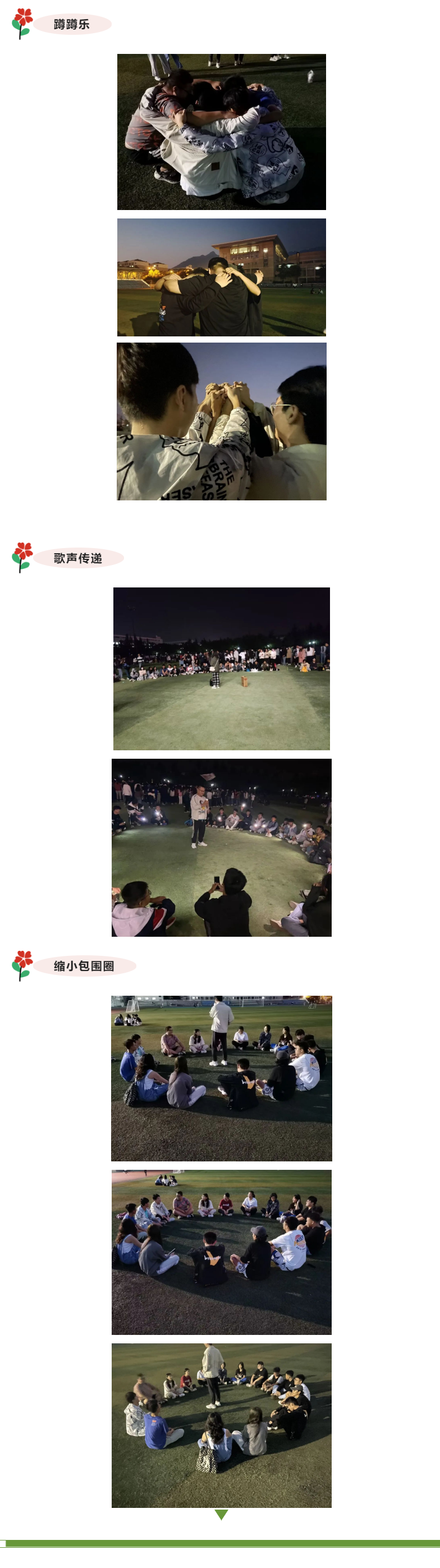 團(tuán)輔在“滾雪球”活動中展開,通過自我介紹、相互介紹、才藝展示,實(shí)現(xiàn)迅速破冰,加快新生之間的了解;通過 “蹲蹲樂”、“歌聲傳遞”、“縮小包圍圈”等多種團(tuán)輔游戲,拓寬同學(xué)們彼此交流的渠道,拉進(jìn)新生間的距離,以此實(shí)現(xiàn)育心暖心的目的。
