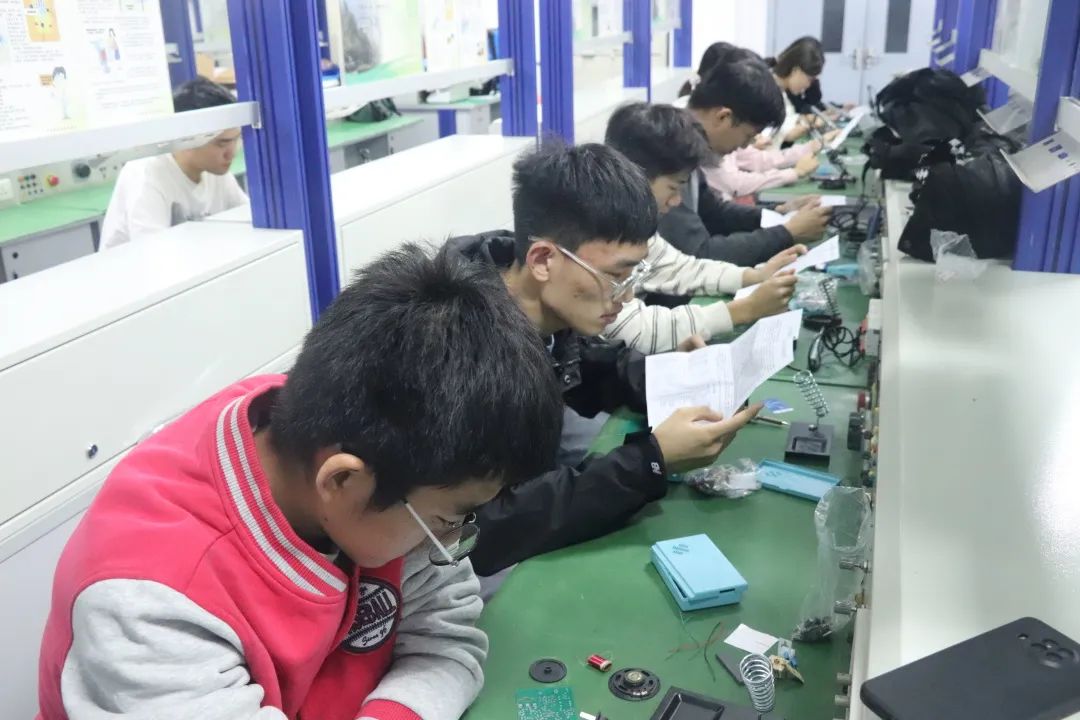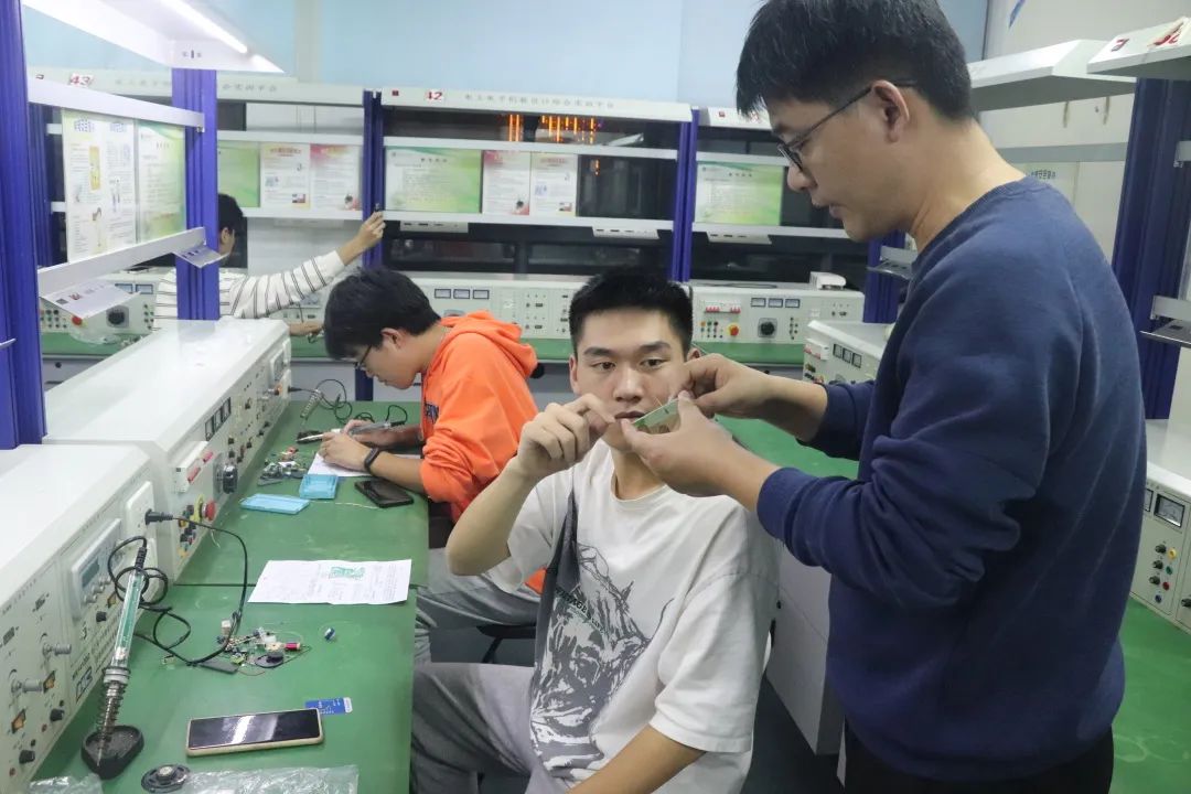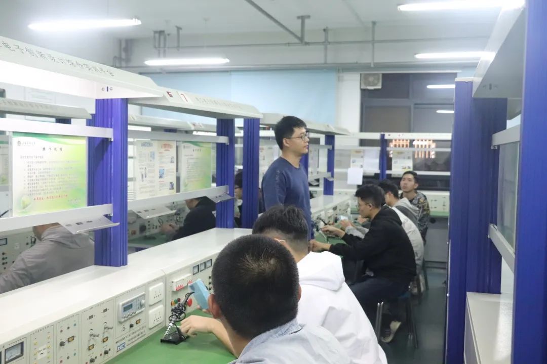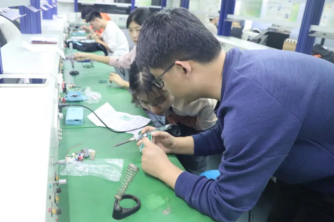 實操環(huán)節(jié),各隊員在保證安全的前提下細心操作,張觀山老師及學長們悉心指導,隊員們認真挑選元件并規(guī)范焊接,焊接操作逐漸熟練。活動最后,隊員們清理桌面垃圾保持實驗室干凈整潔。