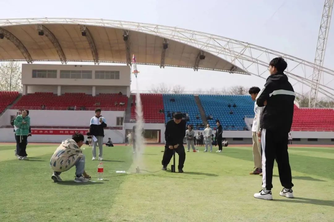 參與活動(dòng)從來都不是一件容易的事情,每位參賽同學(xué)在近一個(gè)月的時(shí)間里學(xué)習(xí)制作知識(shí),熬夜調(diào)試設(shè)備,經(jīng)過數(shù)不盡的試飛、調(diào)試和經(jīng)驗(yàn)總結(jié),最終使一艘艘搭載青春夢(mèng)想的“水火箭”直插云端。“水火箭”大賽有效的將科學(xué)性、趣味性、實(shí)踐性和創(chuàng)新性結(jié)合為一體,充分開闊學(xué)生視野,培養(yǎng)了學(xué)生獨(dú)立思考,開拓實(shí)踐的能力,在學(xué)院營(yíng)造了濃厚的科技創(chuàng)新氛圍。
