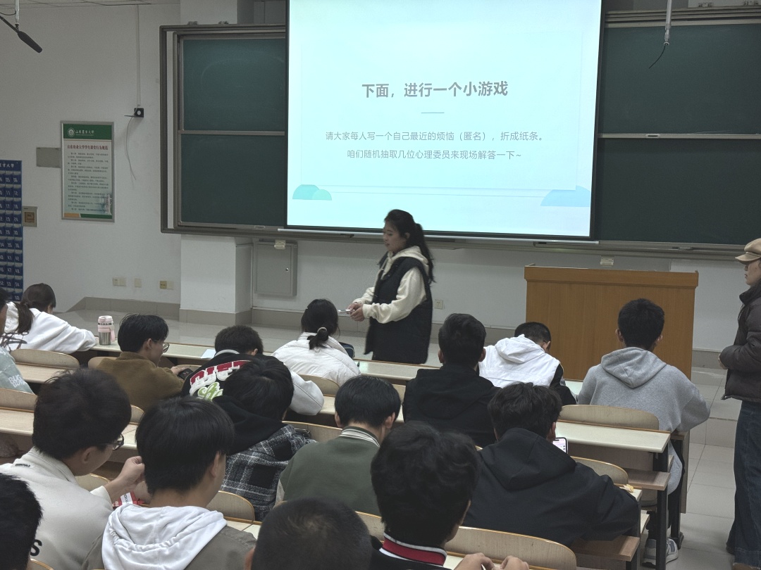 第二環(huán)節(jié):現(xiàn)場(chǎng)互動(dòng)。同學(xué)們將自己的困惑寫到紙上,工作人員統(tǒng)一收取并打亂順序,同學(xué)們隨機(jī)抽取并進(jìn)行現(xiàn)場(chǎng)解疑。過(guò)程中,同學(xué)們都非常積極,對(duì)各類煩惱有了更清晰的認(rèn)識(shí),也收獲了許多解決實(shí)際問(wèn)題的新思路。
